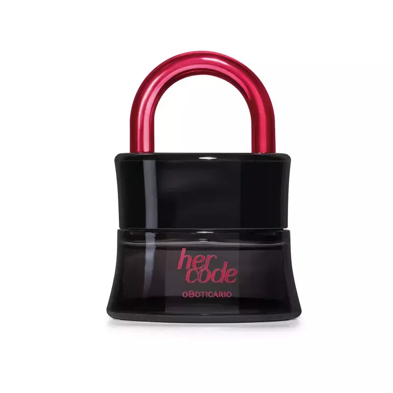 O frasco, em formato de cadeado com a alça na cor vermelha, intensifica toda a sua sensualidade, com o ar do mistério e os códigos de sofisticação da linha.